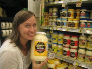 Pictured above: Caroline Sneed in Hendersonville, N.C. stocking up on Duke’s mayo before returning to Seatlle, where she lives.