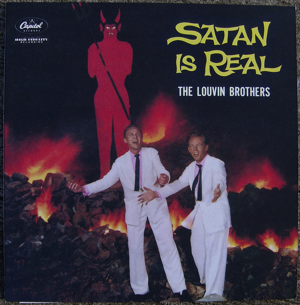 Tales like these ruminate throughout the autobiography. Mr. Louvin’s voice is homey, descriptive, gossipy, crude and utterly engaging. The story of the Satan Is Real album cover, alone, is nearly worth the cost of the book. The brothers built and painted the Satan figure, put him in an abandoned rock quarry, stacked and soaked old tires in kerosene, lit them up, dressed up in their white suits, and called the photographer.